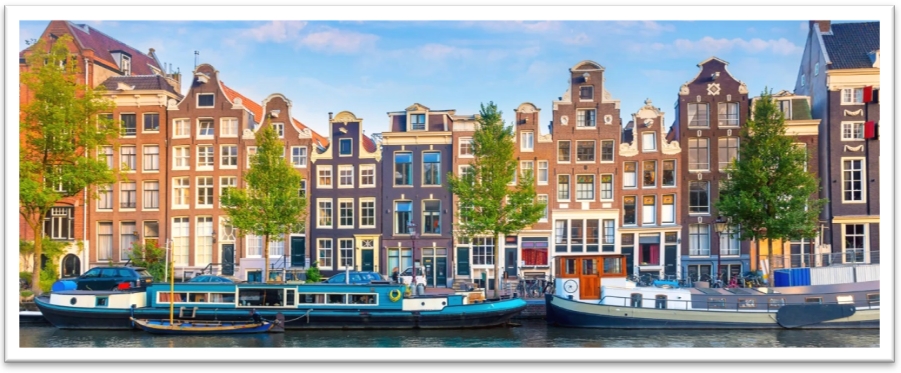 Vous vous rendez aujourd’hui à Amsterdam et commencez votre visite par un tour de ville en bus. Amsterdam n’impressionne pas seulement par ses canaux bordés d’arbres sur lesquels barbotent d’extravagantes péniches, ses ponts-levis pittoresques, ses « Hofjes » intimes et ses façades ornementées de vieilles maisons patriciennes, mais aussi, en dehors de la vieille ville, par ses nouveaux bâtiments et ses immeubles innovants et intéressants sur le plan architectural.