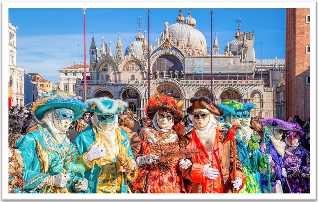 Plongez dans l’atmosphère envoûtante du Carnaval de Venise, où costumes somptueux, masques mystérieux et palais vénitiens créent un décor hors du temps. Vibrez au rythme des défilés, des gondoles et des ruelles animées de la Sérénissime. Puis laissez-vous charmer par Murano, célèbre île des maîtres verriers, où l’art et la tradition se mêlent dans un éclat de lumière et de couleur. Un voyage unique, entre raffinement, mystère et beauté éternelle.