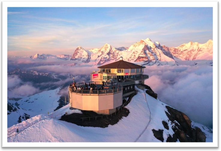 Au fil de la montée, admirez un panorama grandiose sur les Alpes bernoises, jusqu’à atteindre le sommet mythique où se dévoilent l’Eiger, le Mönch et la Jungfrau. Un décor de rêve, rendu célèbre par James Bond, et une expérience inoubliable entre ciel et montagne.