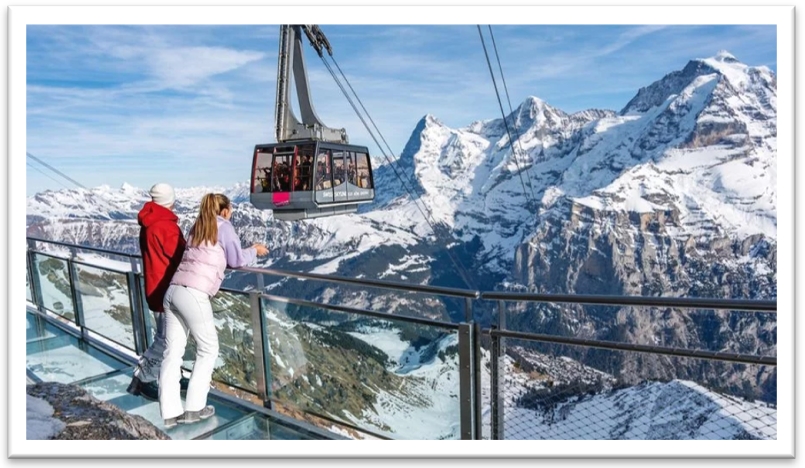 Envolez-vous vers les sommets à bord du téléphérique du Schilthorn, pour une ascension spectaculaire au-dessus des vallées suisses.