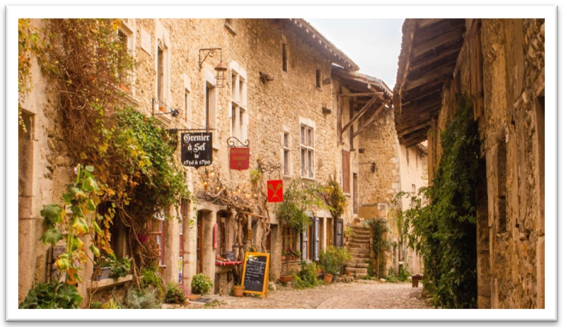 Petit déjeuner à l’hôtel puis départ en direction de Pérouges, magnifique cité médiévale classée parmi les “Plus Beaux Villages de France”.